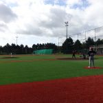 Nous en avons profité pour tester le nouveau terrain des Cougars, et il est tout simplement magnifique. Revêtement de sol intégralement refait avec du gazon synthétique dernière génération, gradins, dugout, cage de frappe, bullpen, tableau de score, etc, tout y est. Ca donne envie! Croisons les doigts pour avoir un terrain pareil un jour. (Allez on croise très fort).